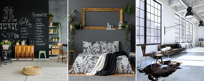 For flooring, think stained concrete floors with cracks, color variations, or imperfections, or reclaimed wood floors with knot holes, gaps, and rub marks. Either way, adding signs of time and use to the floors are a great place to start your vintage industrial style.